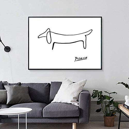 SSWD Picasso - Quadro astratto One Stroke Nordic Poster da parete con cane poster su tela, per camera da letto, soggiorno, senza cornice, 70 x 90 cm