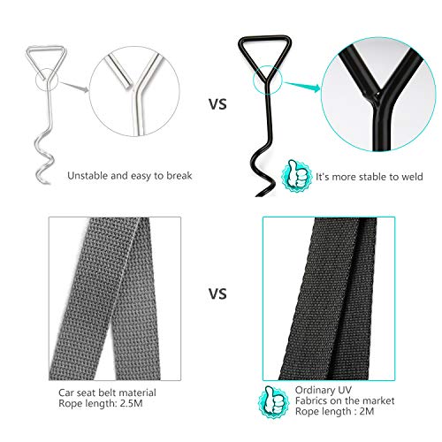 ✅ Alta qualità: 4 cinghie di sicurezza regolabili ispessite da 1,6 mm con fibbia in metallo, che possono essere regolate a qualsiasi lunghezza, lunghezza 248,9 cm, cuscinetto 450 IB, si adattano facilmente al campeggio, trampolino, animali domestici, ecc.