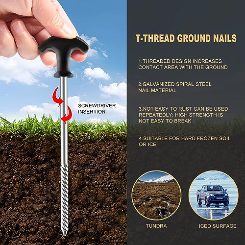 UTILIZZO VERSATILE: I pratici pioli da pavimento in roccia vengono utilizzati per fissare tende, padiglioni, tende da sole, schermi per la privacy, tende da sole, accessori per la pesca e molto altro!