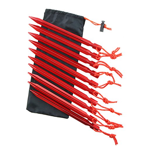 Dawa, 10 picchetti per tenda in lega di alluminio da 17,8 cm con corda, attrezzatura da campeggio, ideale per viaggio in tenda, include una busta modello Oxford, Red