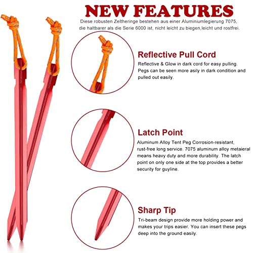 12 picchetti per tenda, 18 cm, robusti picchetti da campeggio, picchetti stabili, picchetti con borsa per il trasporto, in lega di alluminio ultralight Stakes Pegs Nails, picchetti di sabbia (rosso)