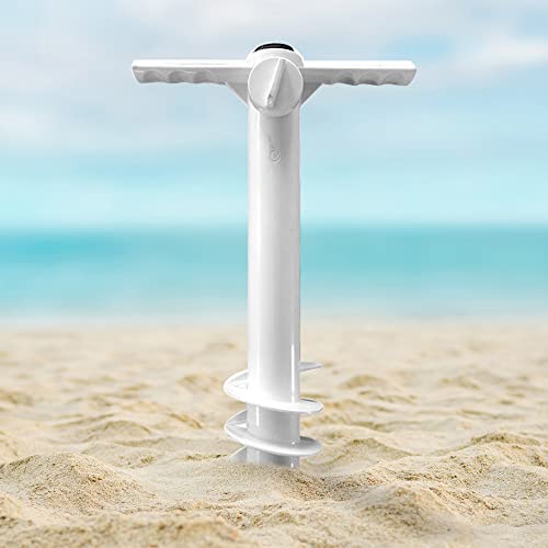 Picchetto di Supporto per Ombrelloni,Porta ombrellone da Spiaggia in plastica Spirale,Base per Ombrellone da Spiaggia per sabbia, prato, erba, vacanze (bianco)