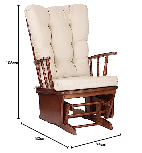 Totò Piccinni Poltrona Sedia a Dondolo TEXAS struttura in legno con Cuscini Oscillante (Panna, Struttura Mogano)