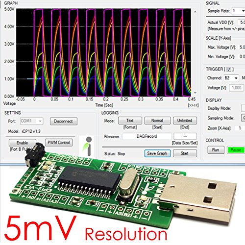 PICcircuit iCP12 - Scheda USB PIC18F2550 con oscilloscopio USB, PC DAQ, Data Logger