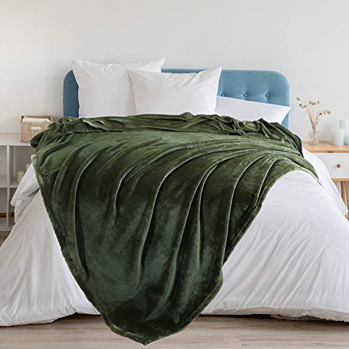 PICCOCASA Coperta in pile per letto king size, 350 g/m², morbida e calda per tutte le stagioni, per divano, letto, viaggi, coperta leggera in microfibra sfocata, 200 x 200 cm, verde militare