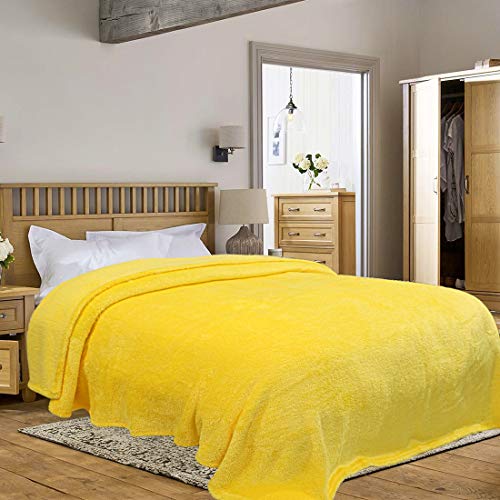 PiccoCasa - Coperta in pile Sherpa King Size, morbida e calda coperta a doppio strato in pile leggero in microfibra, per divano letto (230 x 275 cm, giallo)