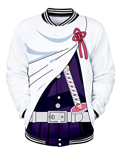 Piccodos Uomo Donna Unisex Stampa 3D Anime Baseball Uniforme, Felpa Kimetsu No Yaiba Kanao Tsuyuri Costume Cosplay Bianco S (Chest 98 cm)