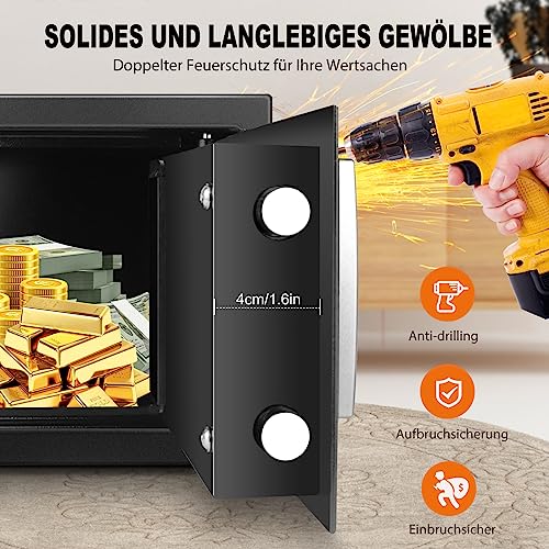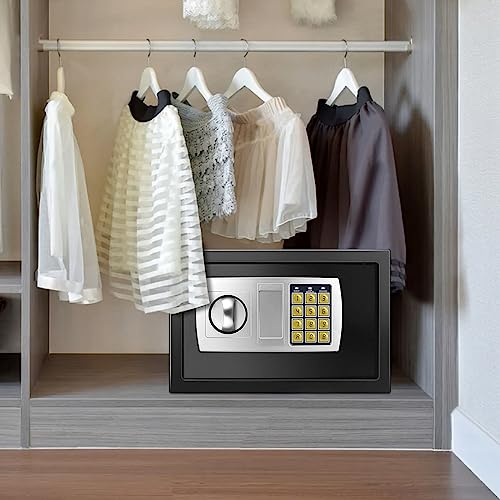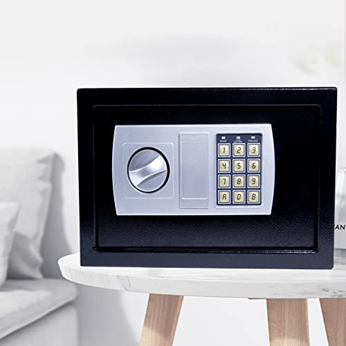 Piccola cassaforte in acciaio per ufficio domestico, cassaforte personale con codice PIN digitale e chiave di emergenza, per conservare contanti, gioielli, 8,5 l, nero