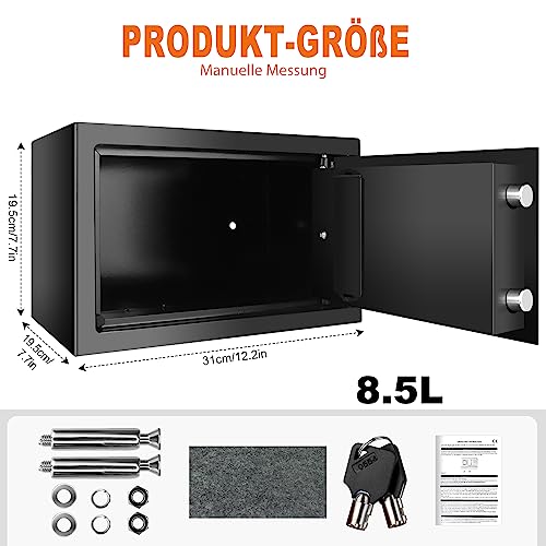 Cassaforte compatta: dimensioni esterne del prodotto: 31 x 20 x 20 cm, capacità: 8,5 l, dimensioni piccole e compatte, è salvaspazio e può essere facilmente incorporata nell'armadio. Nel frattempo, è adatto per il negozio di hotel a casa e per la conservazione di piccoli oggetti, passaporti, ecc.