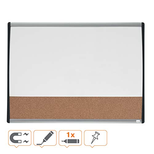 2 IN 1: la superficie magnetica e cancellabile a secco permette di attaccare promemoria e prendere appunti, mentre la bacheca in sughero è ottimale per appuntare documenti importanti