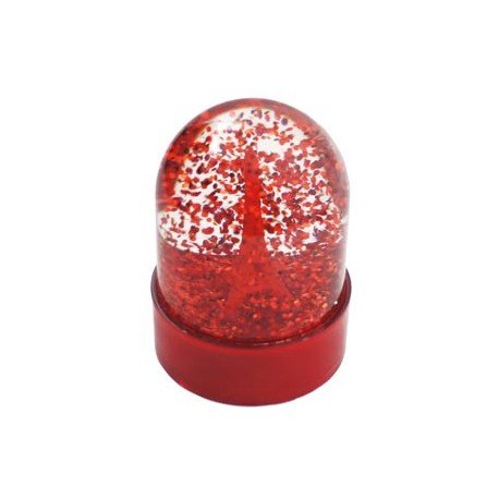 Piccola palla di neve con paillette rosse e alla torre eiffel.