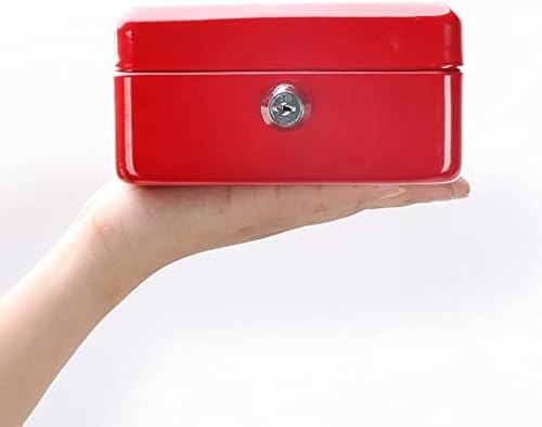 Piccola scatola di contanti con serratura a chiave, scatola metallica portatile di sicurezza di stoccaggio dei soldi della moneta di doppio strato(Rosso)