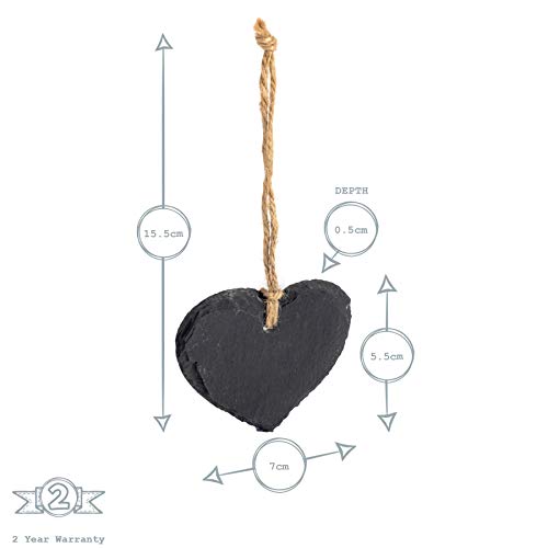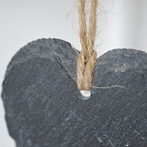 Piccola Targhetta Decorativa, in Ardesia, a Forma di Cuore, da Appendere - Set da 3