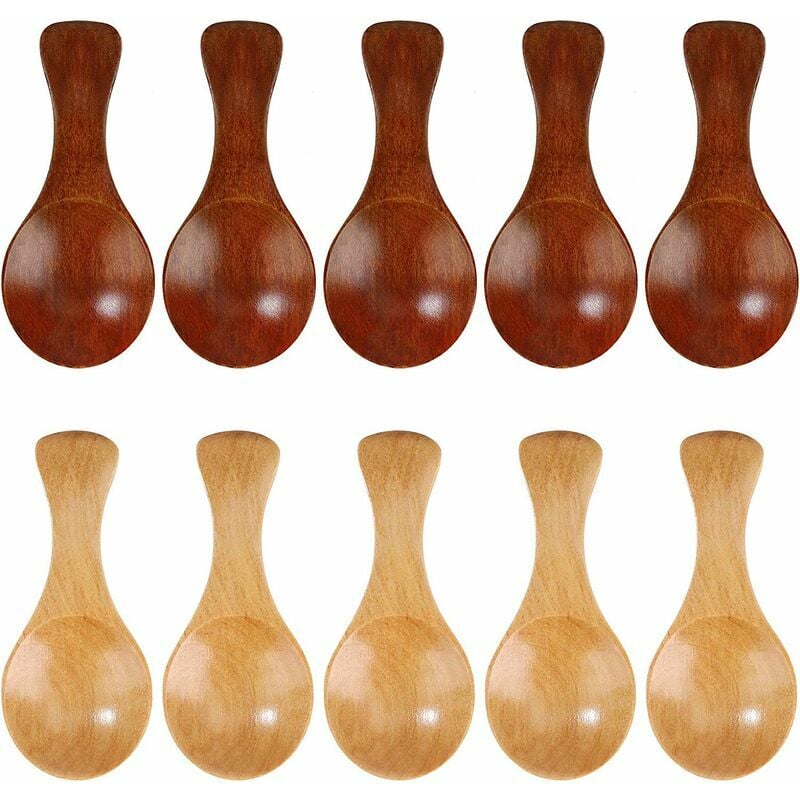 Piccoli cucchiaini per sale in legno - Confezione da 10 mini cucchiaini per spezie in legno con manico corto, i mestoli per miele in legno sono splendidamente realizzati a mano e l'artigianalità si distingue davvero. Dimensioni: presenta manico corto, misure Informazioni 8 cm/3,1 di lunghezza totale e circa 3,5 cm/1,4 di diametro della testa della paletta, possono essere utilizzati nei tuoi vasi piccoli e piccoli. Confezione di grande valore - Include 10 mini cucchiai di legno in colore naturale e marrone, abbastanza per soddisfare le vostre diverse esigenze. Puoi tenerne uno in ciascuno dei tuoi barattoli o contenitori. Ampiamente usato: perfetto per piccoli vasetti di marmellata, spezie, condimenti, zucchero, miele, caffè, tè, senape, gelato, latte in polvere, anche come cucchiaio per bambini o per semplici scopi decorativi. Facile da pulire e riutilizzabile - Non preoccuparti della temperatura del cucchiaio o del manico. Ideale per lo zaino in spalla, l'alpinismo, il campeggio, la
