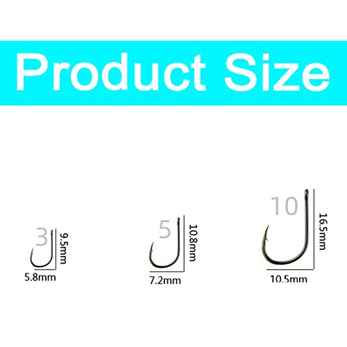 100 piccoli ganci da pesca assortiti in 3 misure assortiti per pescare in plastica portatile forte e affilato con barbe per acqua dolce e acqua di mare, anello a fascia nera (10 (10,5 mm)