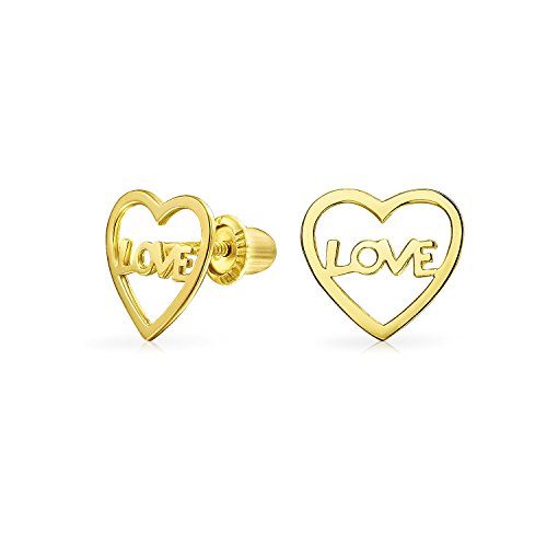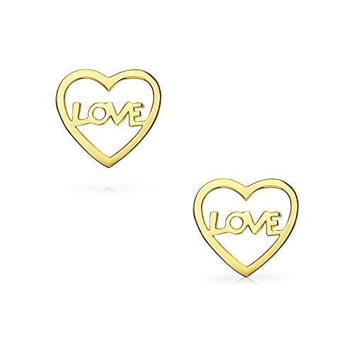 Piccoli orecchini a bottone di parole d'amore minimalisti a forma di cuore aperto per donne per adolescenti vero vite d'oro 14K