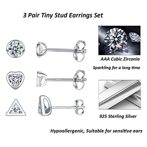 Piccoli orecchini a perno da donna in argento Sterling - 3 paia di orecchini a perno con zirconi cubici e triangolari, ipoallergenici, cartilagine, W Oro bianco 634715801920, zirconia cubica