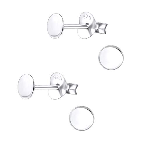 2 paia di piccoli orecchini piatti rotondi in argento 925, lucidi, 4 mm