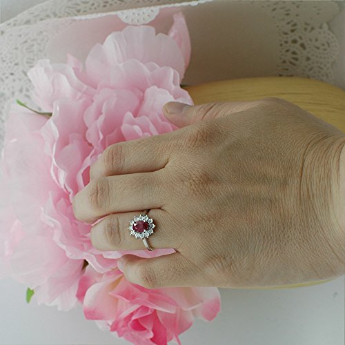 Piccoli Tesori Anello Donna Kate Middleton Diana InspiRosso 14 ct Oro Bianco Rotonda Diamante & Ovale Rosso Genuine Rubino Anello di Fidanzamento