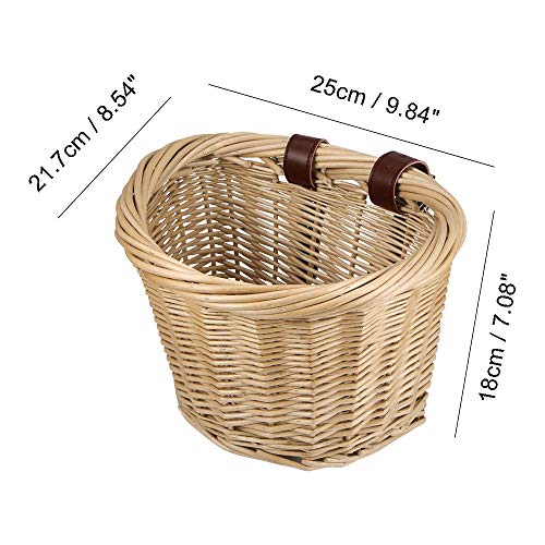 Piccolo Cestino Per Biciclette in Vimini Per Donna, Incrociatori a Forma Di D Intrecciati a Mano Cestino Anteriore Per Bici Cestino Per La Spesa Di Grande Capacità Per Deposito Bici (27*21*20.5cm)