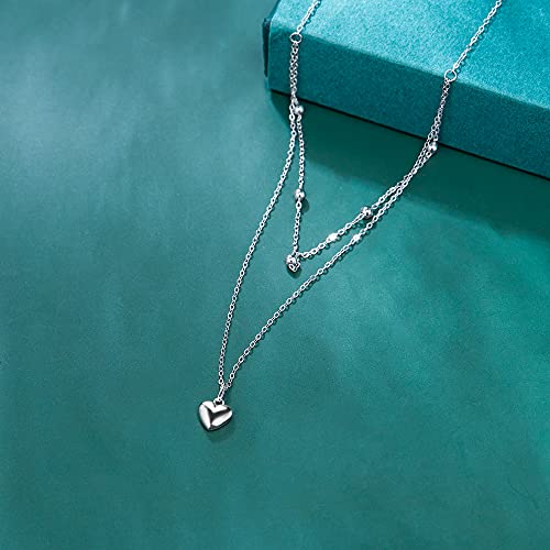 Piccolo Cuore Collana Pendente per Donne, 925 Argento 2 a strati DeliGattoo Rosary Choker Collana per ragazze adolescenti