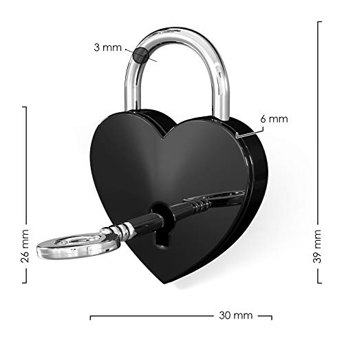LIEBESSCHLOSS-FACTORY Piccolo Lucchetto d'amore a forma di cuore Nero senza incisione, Confezione regalo e molto altro ancora... Prendi il tuo lucchetto d'amore vuoto ora!