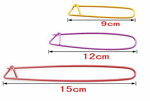 La confezione contiene: 10 x piccoli fermapunti ( lungo 9cm ) + 10 medi fermapunti ( lungo 12cm ) + 10 grandi fermapunti ( lungo 15cm). Il colore è verde, blu, rosso, arancione e il colore è casuale.