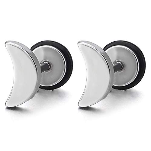 Piccolo Mezzaluna Luna Orecchini da Uomo Donna, Acciaio Inossidabile, Riavvitare, 2 Pezzi