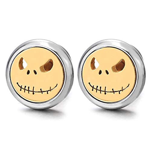 Piccolo Mostro Orecchini da Uomo Donna Ragazzi, Orecchini a Lobo, Acciaio Inossidabile, Argento Oro, Riavvitare