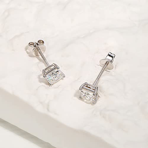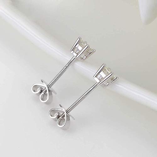 Piccolo Piercing Orecchini a Perno per Donna Bambini in Oro Bianco 14kt (585) Solido con Gemma Moissanite 1 ct - Dimensione: 4.6 * 4.6 mm