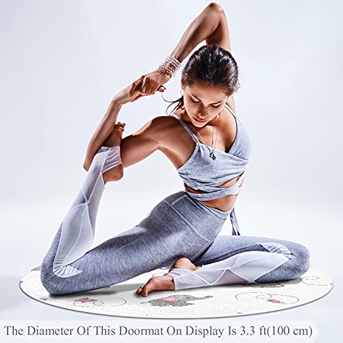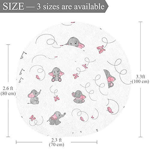 Piccolo tappeto circolare antiscivolo zona rotonda tappeti lavabile tappetino Uso per la scuola materna tappeto carino cartoon elefanti e farfalle 70x70cm