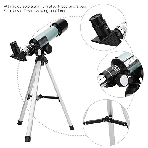 ☀ 【Telescopio astronomico portatile】Questo telescopio astronomico dotato di treppiede regolabile in lega di alluminio e una borsa per molte diverse posizioni di visualizzazione, telescopio e treppiede possono essere installati nella borsa per un facile trasporto e conservazione. Perfetto per bambini e adulti.