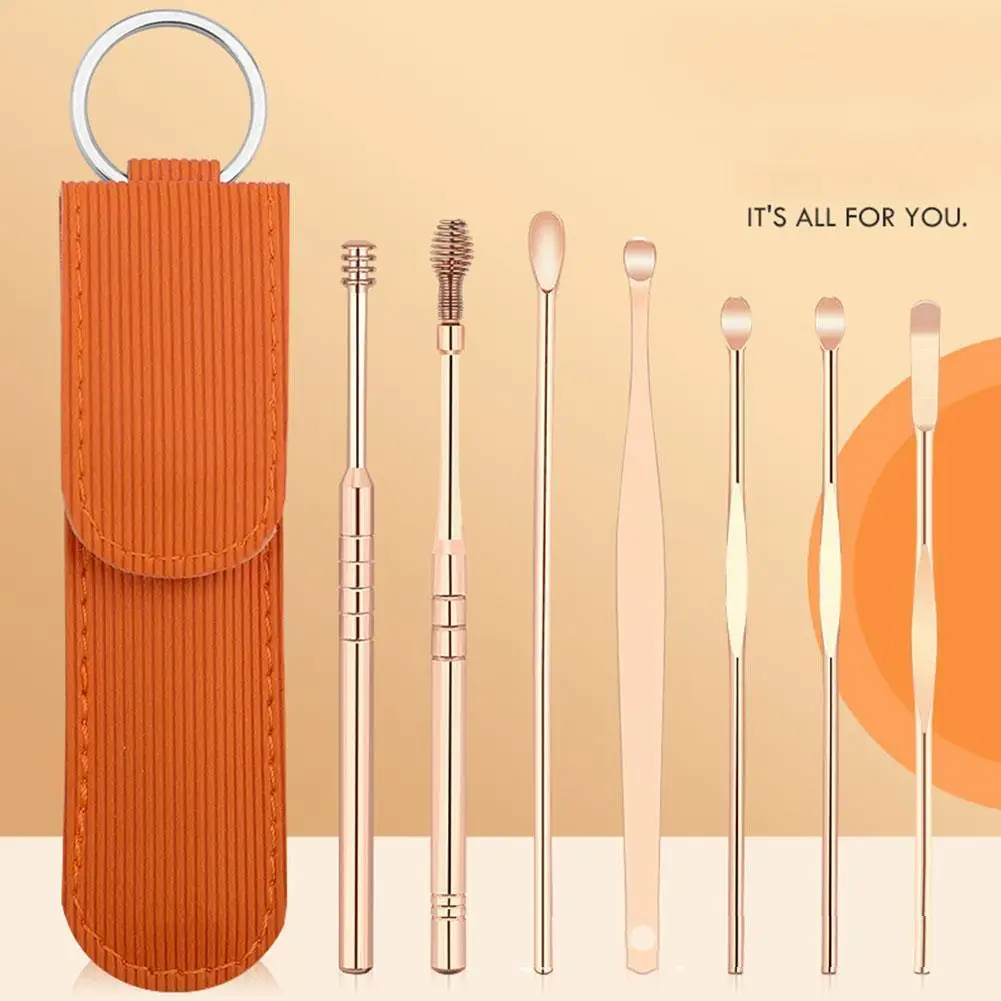 7Pcs Ear Wax Pickers Steel Earpick Wax Remover Curette Ear Pick Cleaner Ear Cleaner Spoon Care Ear Clean Tool