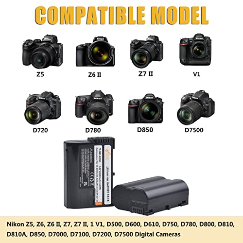 Alta capacità: 2 batterie EN-EL15C EN-EL15B EN-EL15 da 2280 mAh ad alta capacità. Utilizza celle di alta qualità per una maggiore durata della batteria senza effetto memoria.