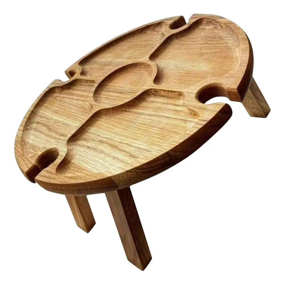1Pc Picnic Glass Rack Outdoor Table Collapsible Wooden Table Khaki