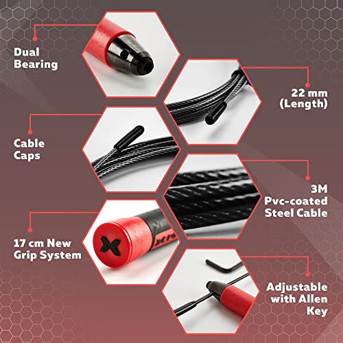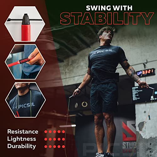 PICSIL Sphinx Corda da Salto Veloce, Rotazione a 360°, Sistema a Doppio Cuscinetto, Ideale per Allenamento in Casa, Boxe, Fitness e Condizionamento, per Uomo, Donna e Bambino, Rosso