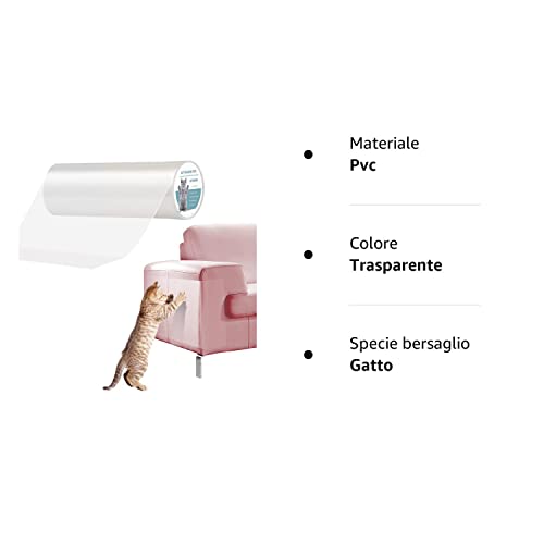 MASSIMA PROTEZIONE DEI MOBILI - Questo rotolo di adesivi di protezione può essere installato su divano, tavoli, sedie, porte, sedili auto e pareti per proteggerli dai gatti.