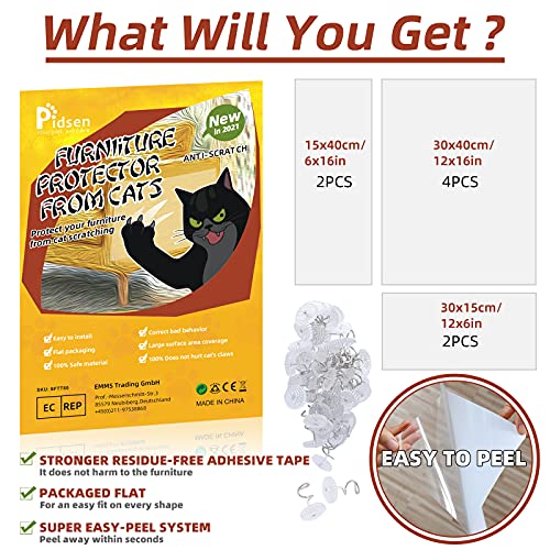 Pidsen Protezione Graffi Gatto, 8PCS Autoadesive Trasparente PVC Anti-Graffio Protector per Gatti e Cani con 48 Viti Protezione per Divano e mobili