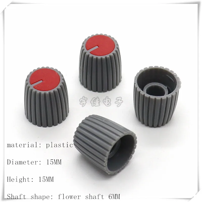 10 Piece 15X15MM gray red plastic knob cap potentiometer volume adjustment knob suitable for flower shaft 6MM