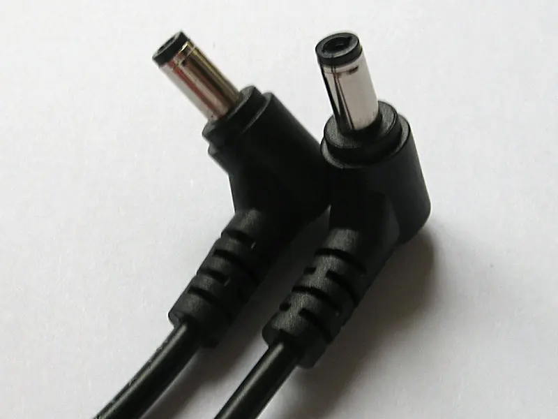 2 piece 22AWG Double male L-shaped DC 5.5x2.1mm 90 Right Angle Male to Male cable power plug adapter connector cord 29cm