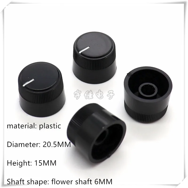 5 Piece 20.5X15MM black plastic knob cap potentiometer volume adjustment switch knob is suitable for flower shaft 6MM