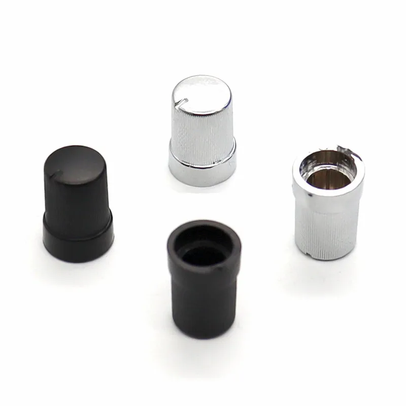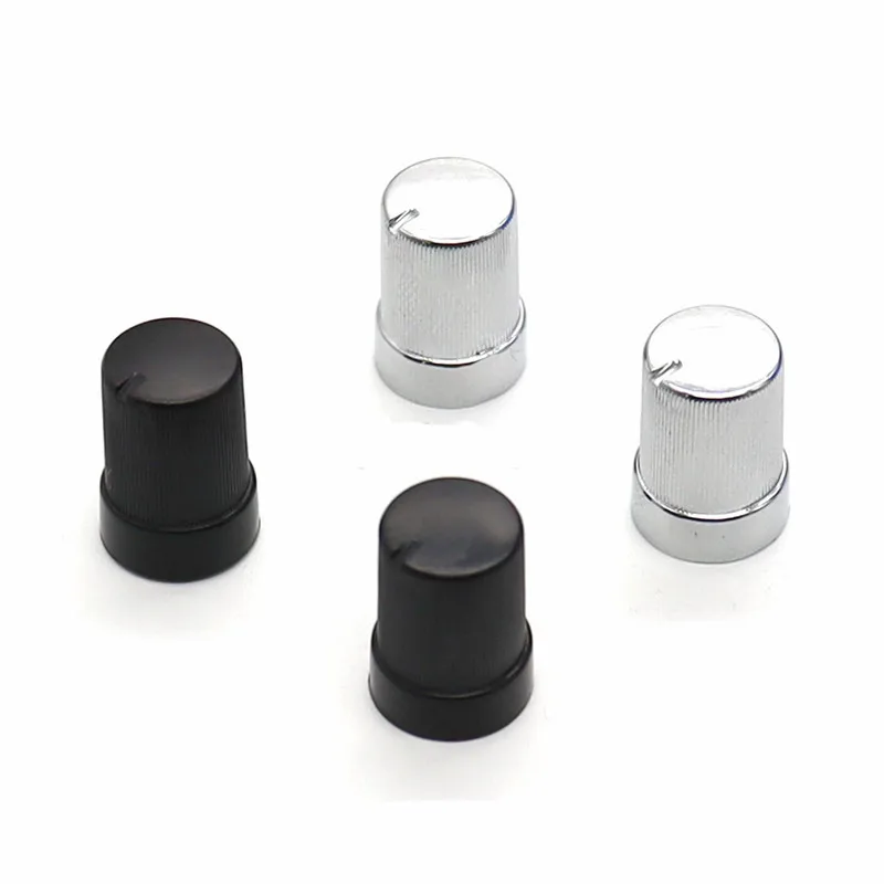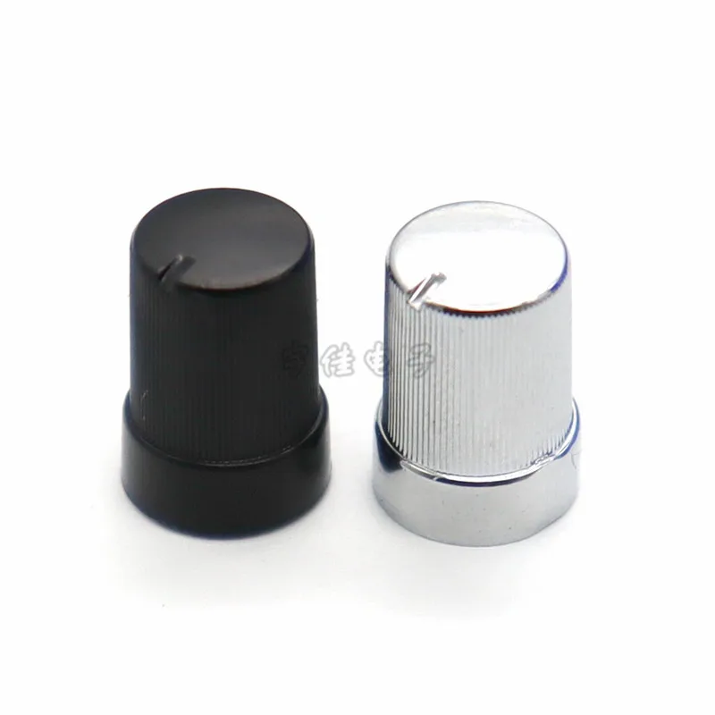 10 Piece 10 * 14MM electroplated plastic black silver knob inner hole 6mm potentiometer power amplifier volume adjustment knob
