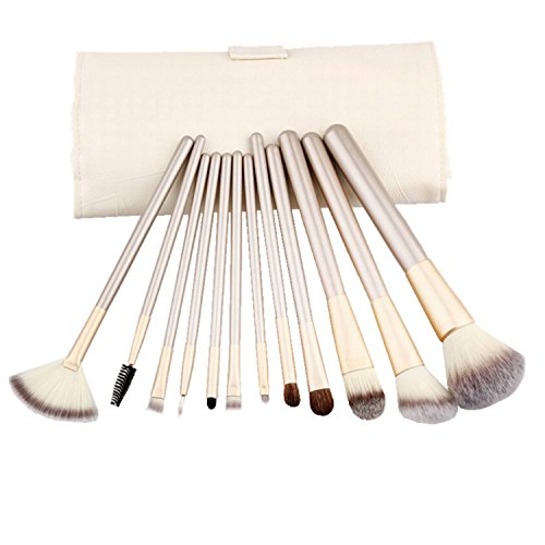 12 Piece Makeup Brushes Set | Horse Hair Professional Kabuki Makeup Brush Set Cosmetics Foundation Makeup Brushes Set Kits with White Cream-colored Case Bag by YOA
