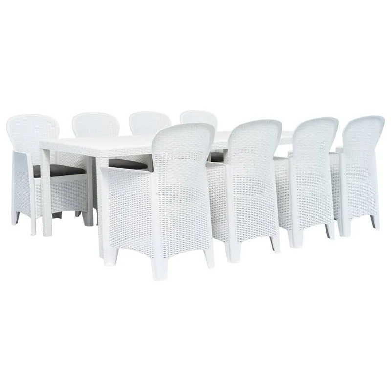 9 Piece Outdoor Dining Set Plastic White Rattan Look (45607+4x45598) Outdoor Furniture Sets
