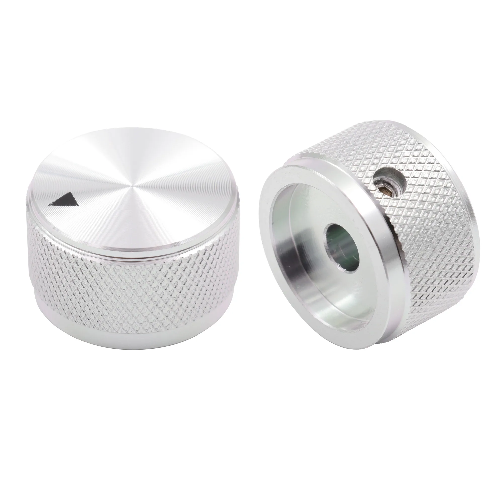 1 Piece Silver Solid Aluminum Cylindrical Grid Type Audio System DIY Knobs, Diameter 25mm, Height 15.5mm