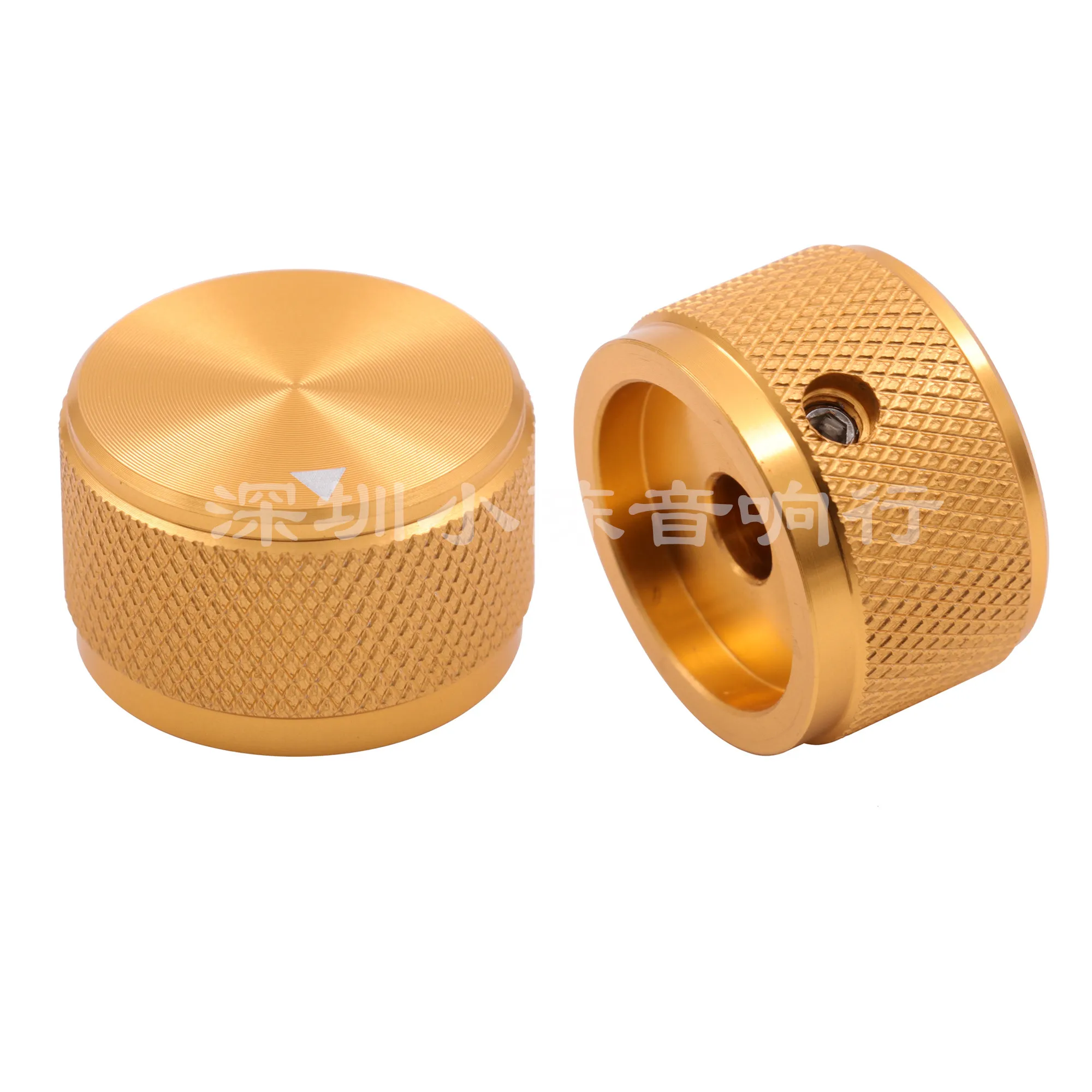 1 Piece Gold Solid Aluminum Cylindrical Grid Type Audio System DIY Knobs, Diameter 25mm, Height 15.5mm