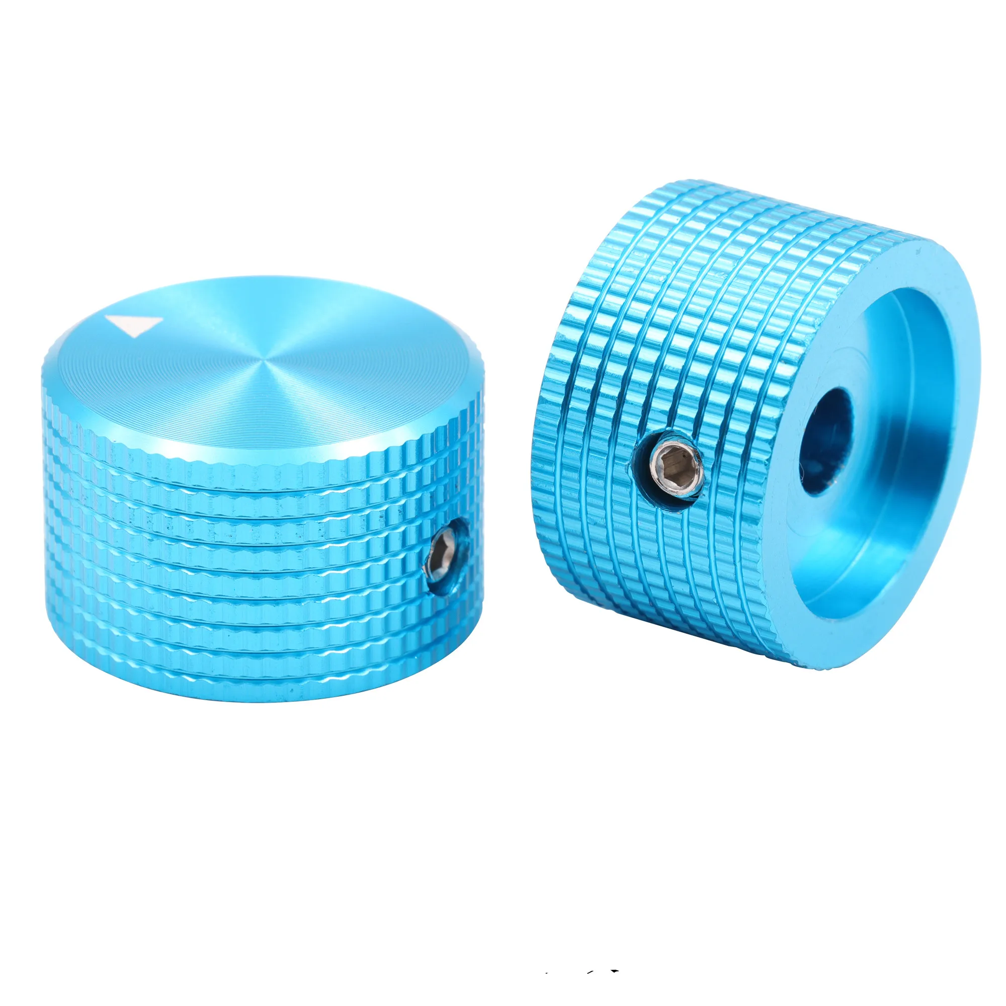 1 Piece Blue Solid Aluminum Cylindrical Grid Pattern Audio System DIY Knobs, Diameter 25mm, Height 15.5mm
