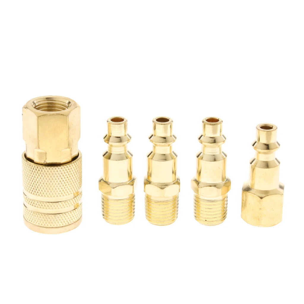 5 Piece Solid Brass Quick Coupler Set Air Hose Connector Fittings Plug 1/4 inch