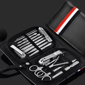 16 Piece Stainless Steel Nail Clipper Set Nail Scissors Beauty Nail Pedicure Tool Manicure Sickle Pusher Nail Care with Case