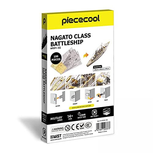 Piececool Nagato Class Battleship HP091SG Highly Detailed Metal Model Kit,No Glue, 199 Pieces
